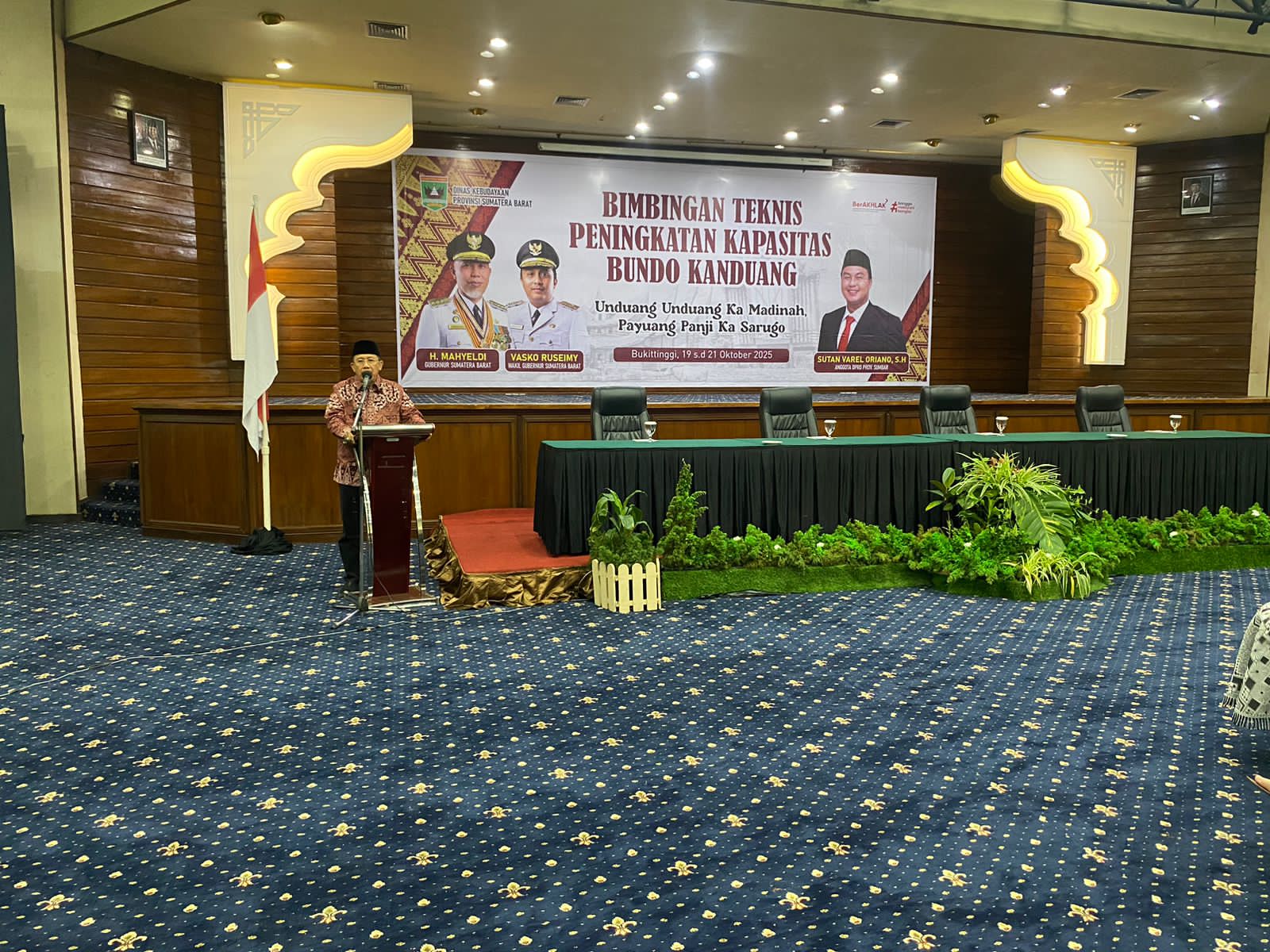 Bukittinggi– Dinas Kebudayaan Provinsi Sumatera Barat melalui dana pokok-pokok pikiran (Pokir) Anggota DPRD Sumbar, Sutan Varel Oriano, melaksanakan kegiatan Bimbingan Teknis (Bimtek) Peningkatan Kapasitas Bundo Kanduang di Hotel Monopoli, Bukittinggi. Kegiatan ini diikuti oleh 80 peserta dari Kabupaten Dharmasraya, dan berlangsung selama tiga hari, mulai 19 hingga 21 Oktober 2025.