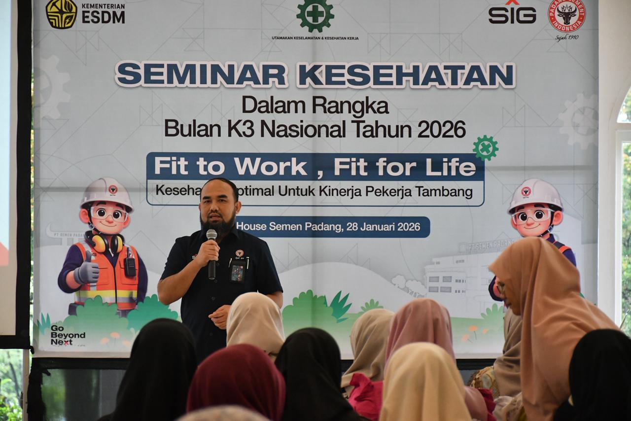 PADANG – Dalam rangka memperingati Bulan Keselamatan dan Kesehatan Kerja (K3) Nasional 2026, PT Semen Padang menegaskan komitmennya terhadap perlindungan dan peningkatan kualitas sumber daya manusia melalui seminar kesehatan bertema “Fit to Work, Fit for Life: Kesehatan Optimal untuk Kinerja Pekerja Tambang”, Rabu (28/1/2026).
