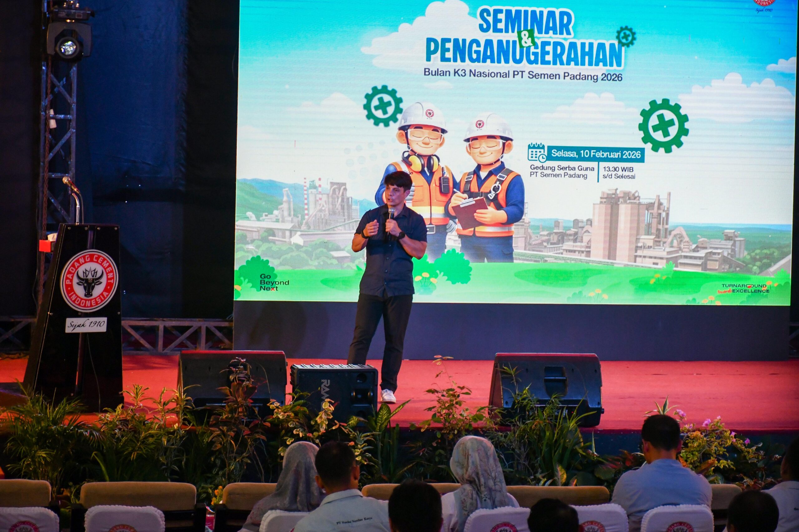 Mengusung tema “Fit to Work, Fit to Perform: Kesiapan Fisik sebagai Fondasi Keselamatan dan Produktivitas Kerja”, Coach Matias tampil sebagai pembicara utama di hadapan ratusan insan PT Semen Padang di Gedung Serba Guna (GSG) PT Semen Padang, Selasa (10/2/2026). Ia mengajak peserta melihat K3 bukan hanya dari sisi prosedur, tetapi dari kesiapan manusia sebagai subjek utama keselamatan.