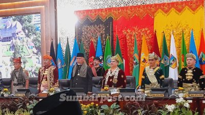 Padang- DPRD Provinsi Sumatera Barat menggelar Rapat Paripurna dengan agenda penyampaian jawaban Gubernur terhadap pandangan umum fraksi-fraksi atas Rancangan Peraturan Daerah (Ranperda) tentang Anggaran Pendapatan dan Belanja Daerah (APBD) Provinsi Sumatera Barat Tahun Anggaran 2026. Rapat tersebut berlangsung pada Senin (6/10/2025) di ruang sidang utama DPRD Sumbar.
