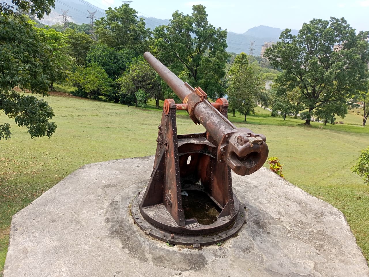Namun bukan hanya alam yang membuat pengunjung berhenti melangkah. Dua meriam tua di tengah kawasan hijau itulah yang kerap mencuri perhatian. Banyak yang berswafoto di depannya. Tak jarang pasangan pengantin menjadikannya latar foto—tanpa sepenuhnya menyadari bahwa mereka berdiri di hadapan saksi bisu Perang Dunia II.