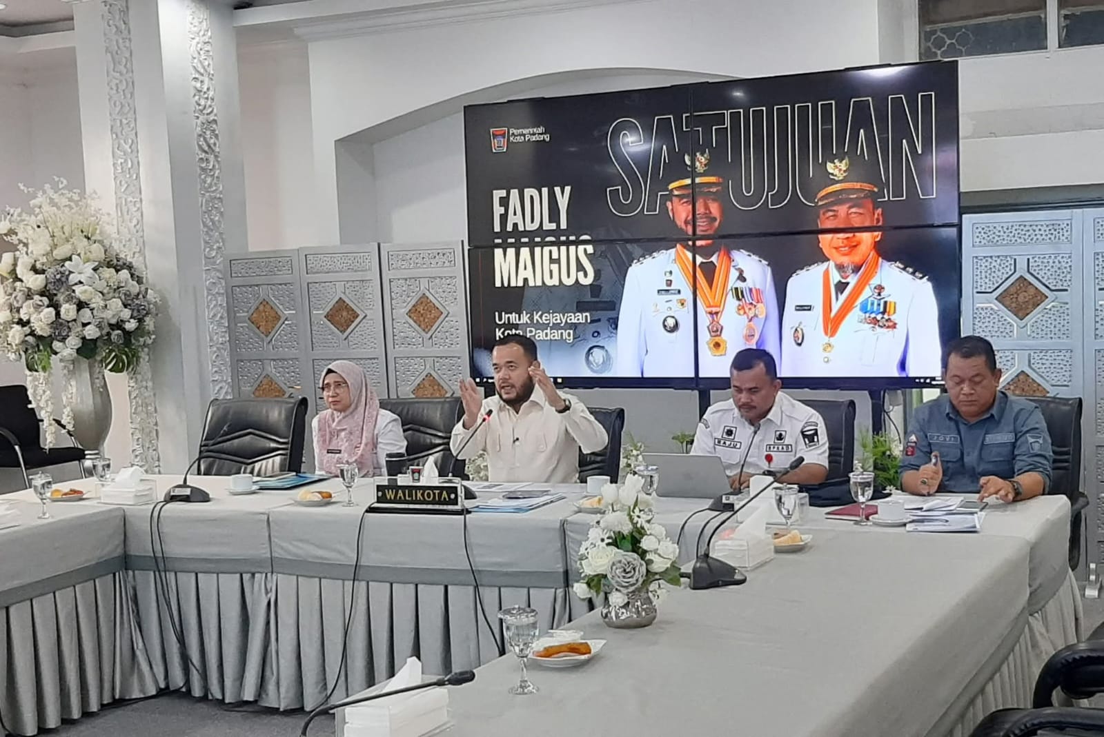 Rapat ini membahas kerjasama Pemerintah Kota (Pemko) Padang dan Jerman terkait rencana revitalisasi Sungai Batang Arau sebagai bagian dari pengembangan kawasan kota tua, serta pengadaan angkutan massal Bus Trans Padang berbasis baterai.