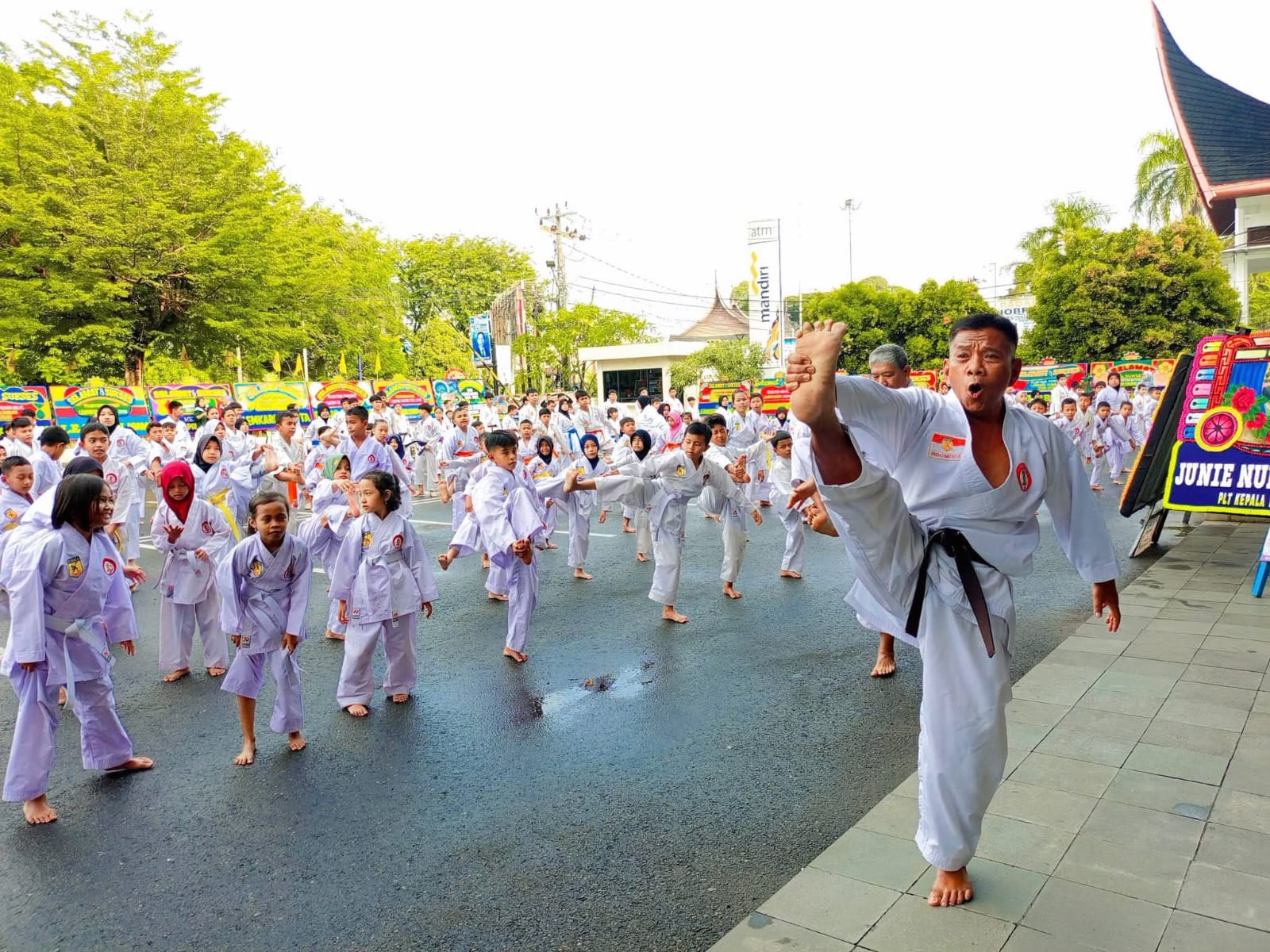 Padang — Setelah Pengcab Lemkari Kota Padang menyatakan pujian atas dilaksanakannya Pengukuhan Kepengurusan Lemkari Pengprov Sumbar di Gedung Bagindo Aziz Chan Youth Center, Latihan Gabungan Karateka Lemkari Kota Padang menjadi rangkaian acara jelang pengukuhan.