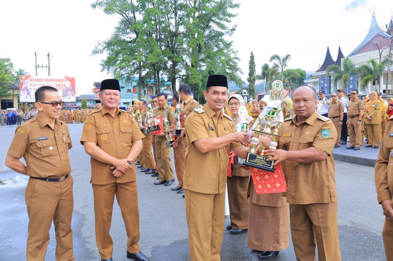 Selesai sambutan dan arahan dari Bupati, oleh Wakil Bupati Pasaman Parulian Dalimunthe secara langsung hadiah diberikan kepada Ketiga orang Wali Nagari yang menjadi nagari berprestasi di bawah tatapan para peserta Apel Gabungan yang hadir di halaman kantor Bupati Pasaman