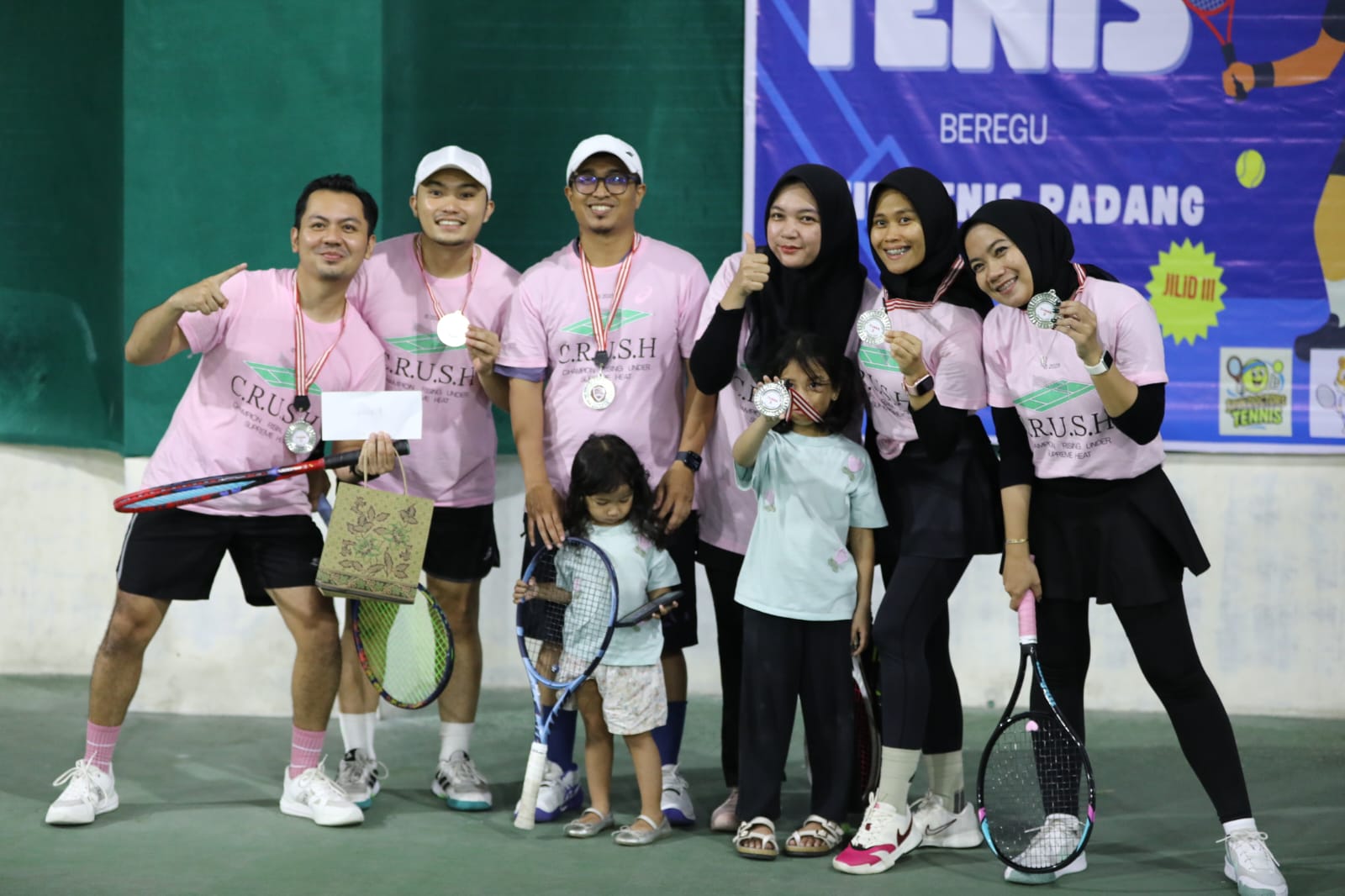 Padang — Komunitas Rutin Tenis Padang yang basecampnya di Lapangan Tenis Indor UNP sukses menggelar pertandingan Tenis Beregu, pada Minggu (9/11/2025).